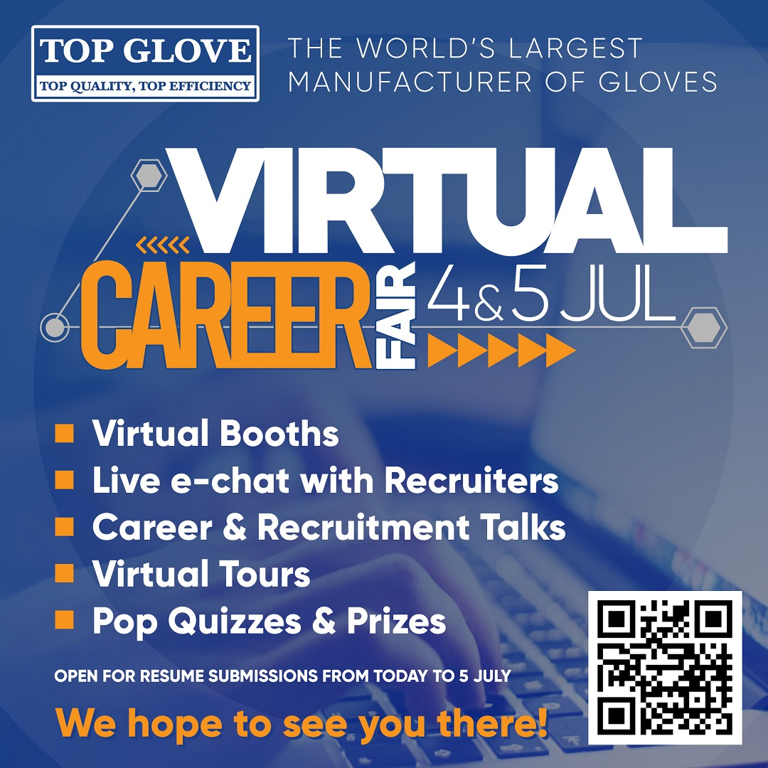 In conjunction with the new norm, Top Glove will be holding a Virtual Career Fair for job seekers out there! Click HERE or scan the QR code for some awesome jobs at Top Glove!