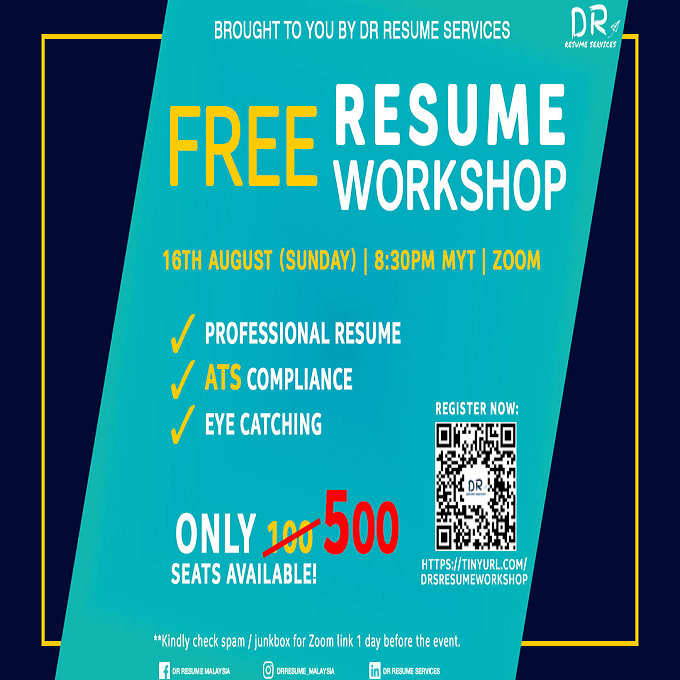 Registration URL: https://tinyurl.com/DRSResumeWorkshop (FREE)