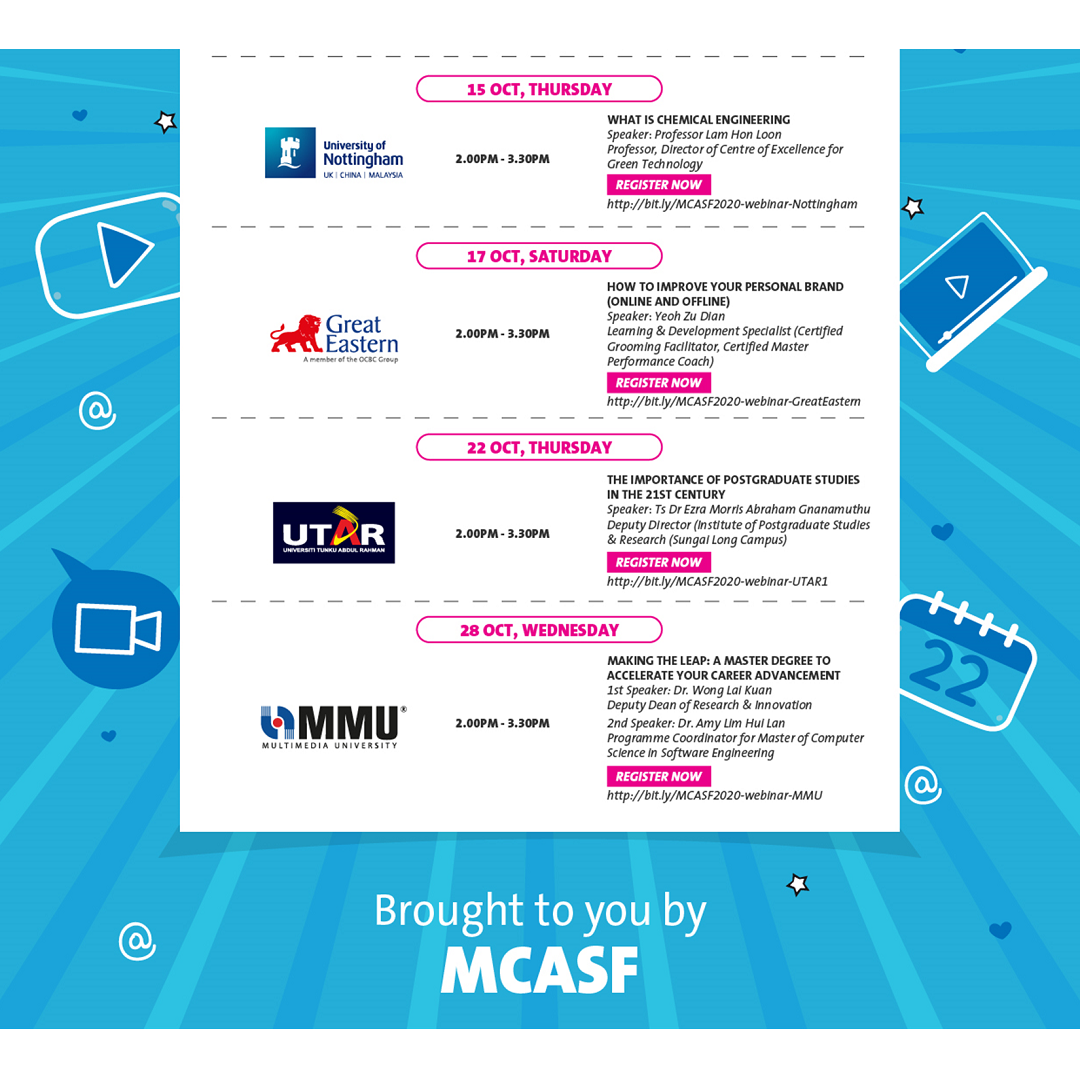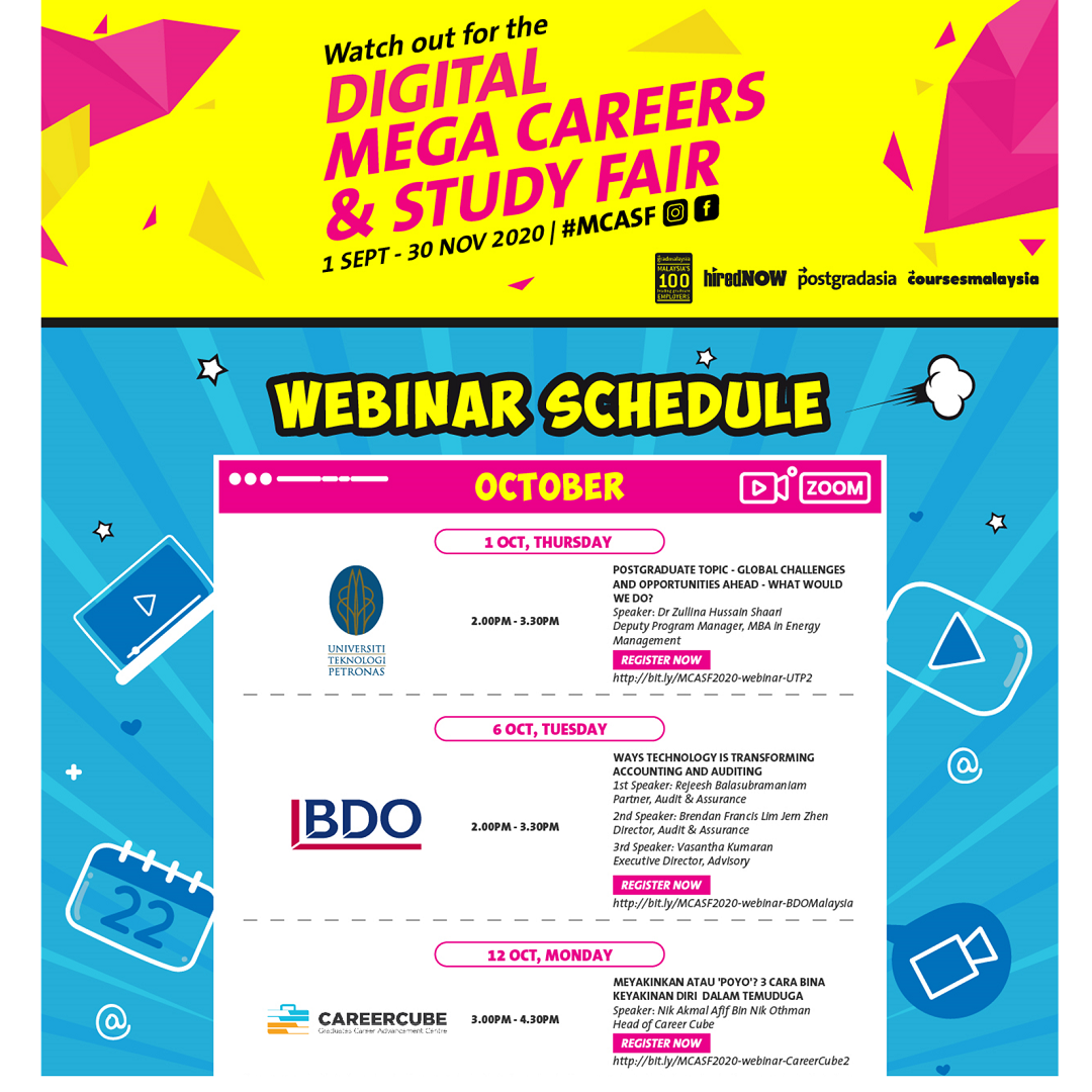 Check out the series of webinars. Register now to secure a seat as seats are limited...
