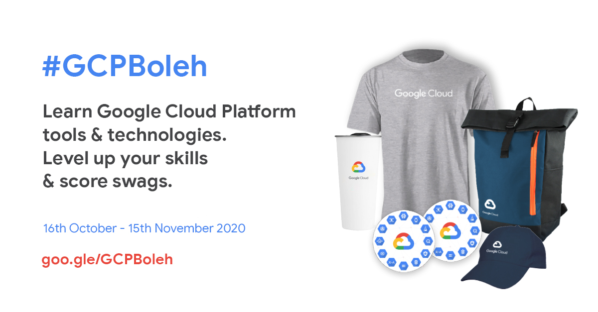 Great opportunity to learn Infrastructure modernization, Application Development, ML & Data Analytics on Google Cloud Platform online and score swags when you complete quests. Join #GCPBoleh Today!