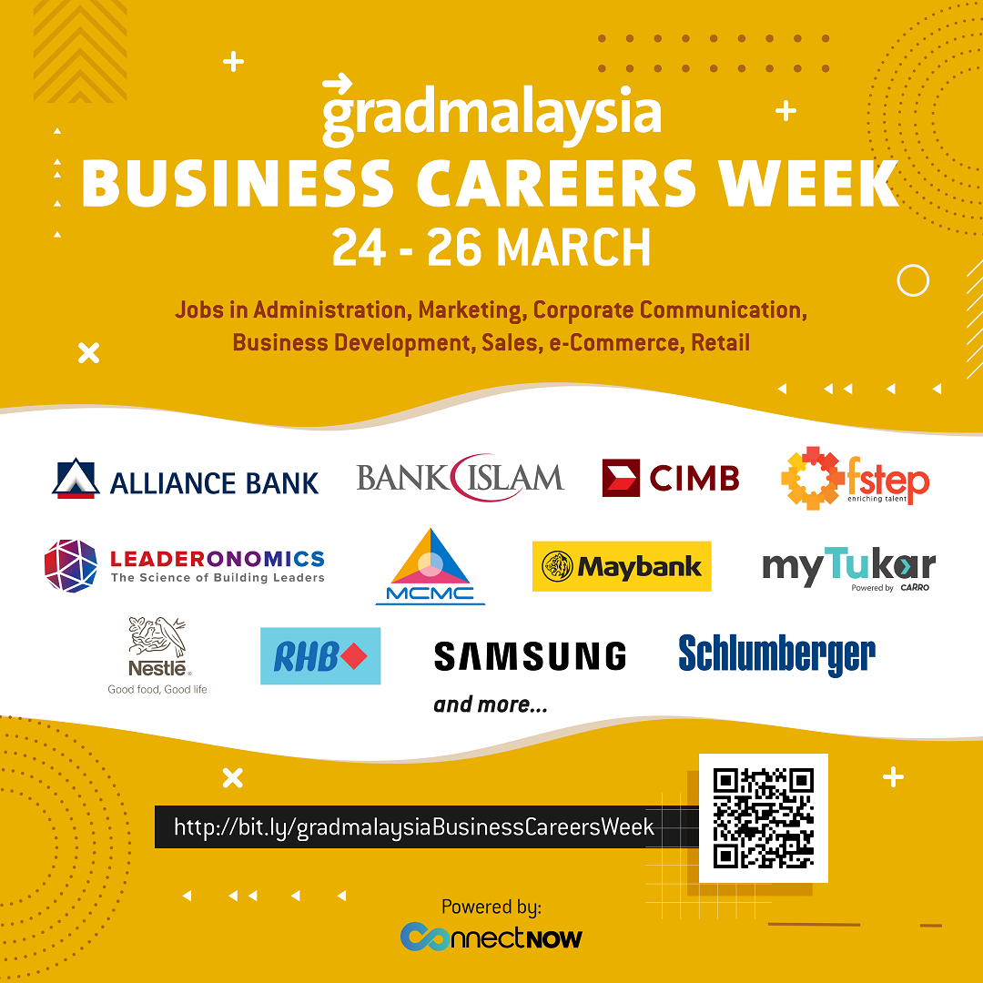 Our gradmalaysia Business Careers Week will begin on Wednesday (24th March) to Friday (26th March)! Register to join the event at http://bit.ly/