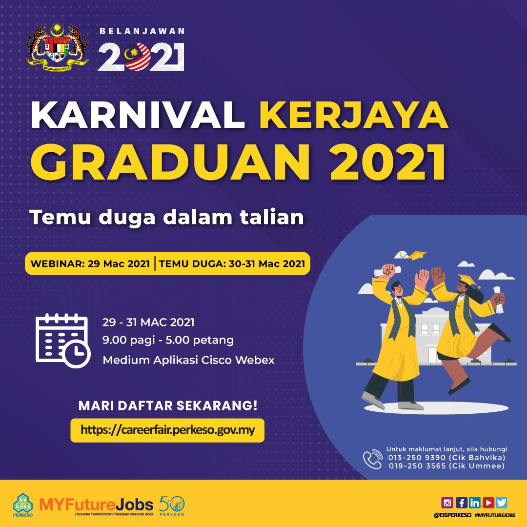 Berita baik buat lepasan graduan di luar sana. Karnival Graduan kini akan berlangsung selama 3 hari bermula 29 Mac 2021 - 31 Mac 2021