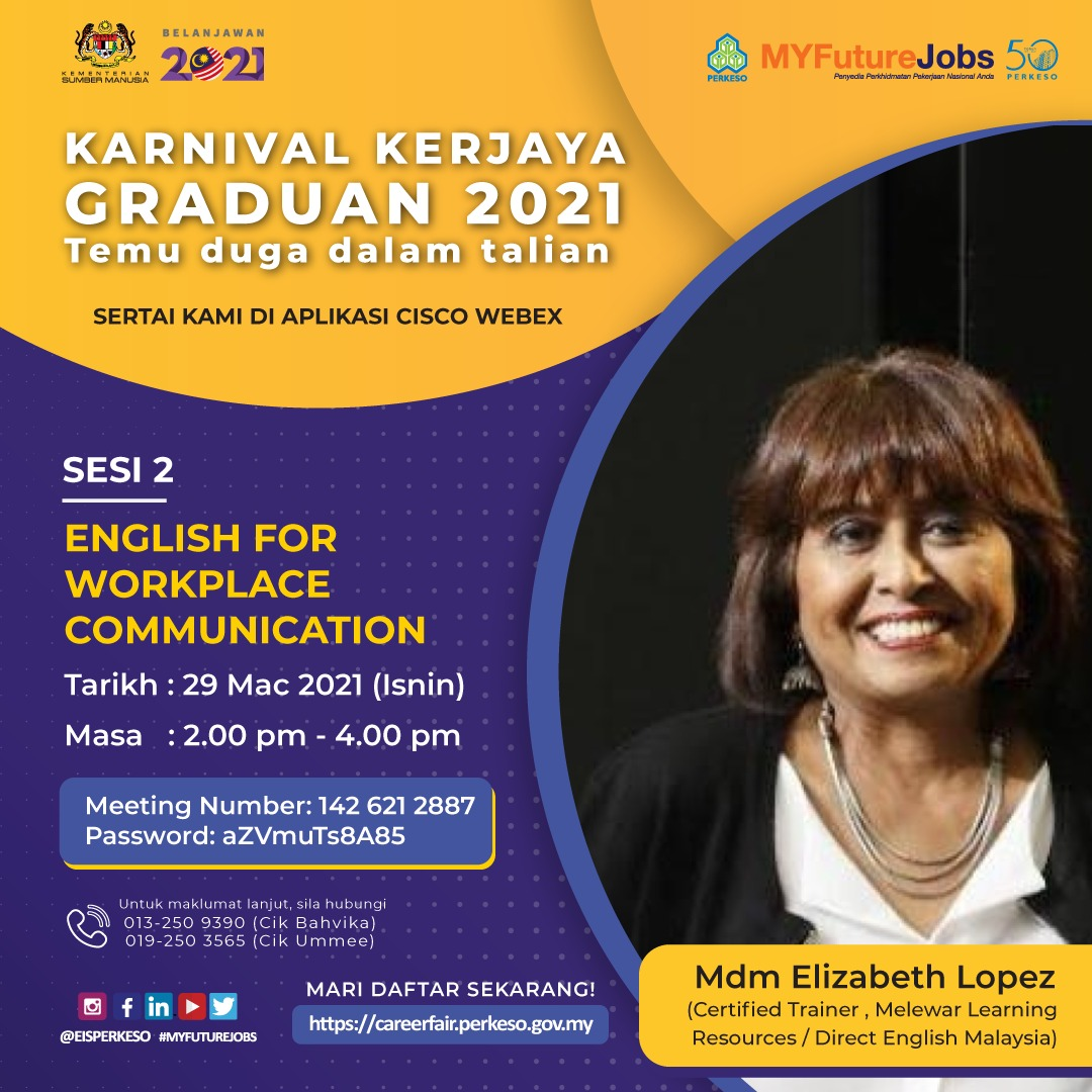 Mari sertai perkongsian secara langsung daripada pakar industri berkaitan komunikasi dan tips kerjaya untuk menghadapi sesi temuduga. Setiap kehadiran Siri Webinar Kerjaya ini, anda akan menerima e-sijil penyertaan.