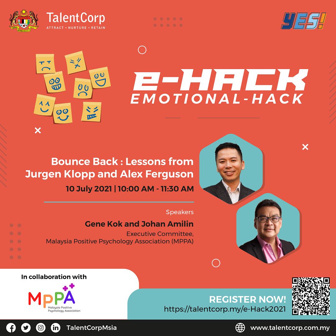 Do you often feel stressed and burnt out? Do you feel tired just to get through another day? Here we have prepared for you the secret to having a positive and strong mindset with a series of webinars, e-Hack (Emotional Hack) from 6th - 16th July 2021! Let's enjoy the wonderful sharing with various kind of topics: