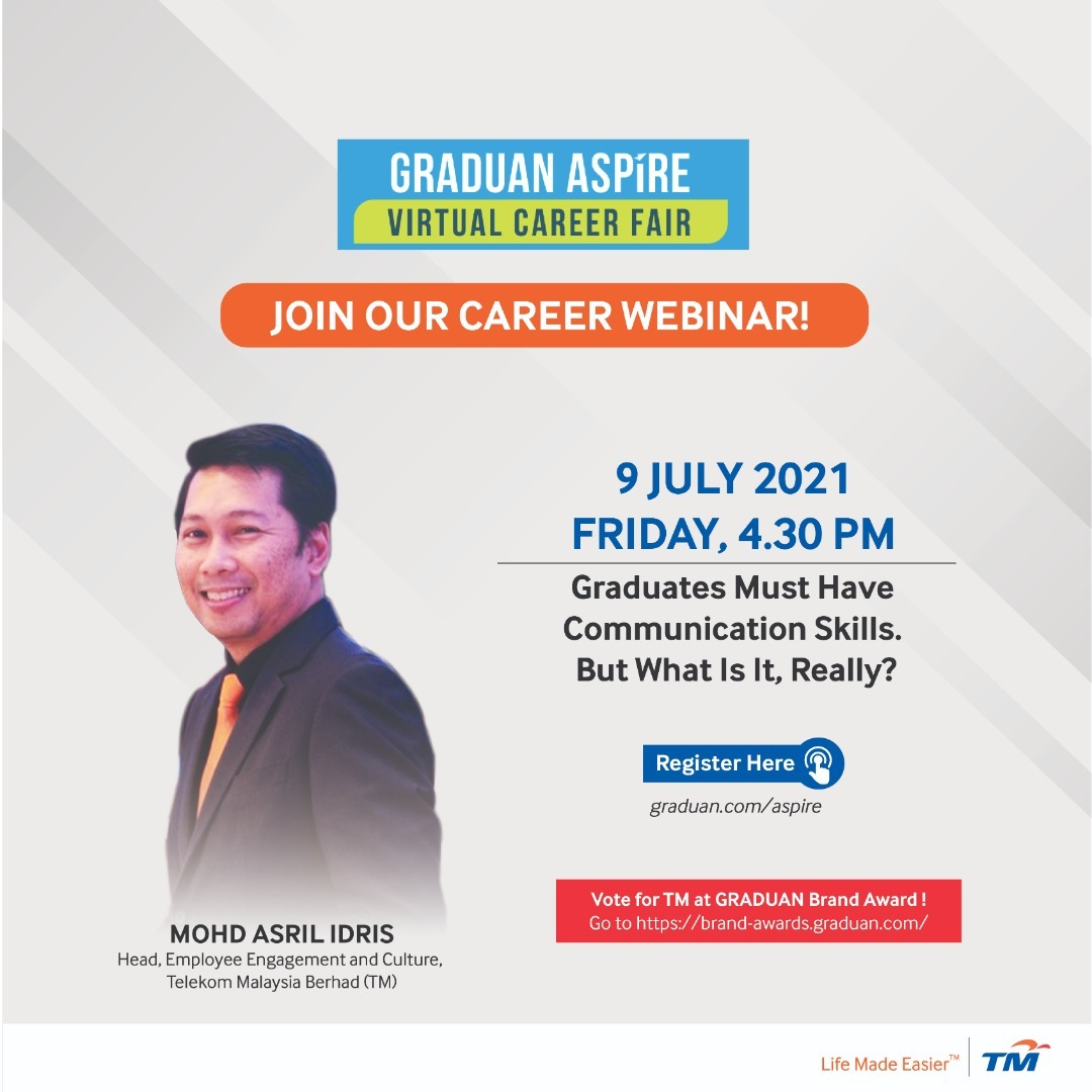 Come and join the Career Webinar by Telekom Malaysia Berhad (TM) at GRADUAN Aspire Virtual Career Fair & learn from our expert!
