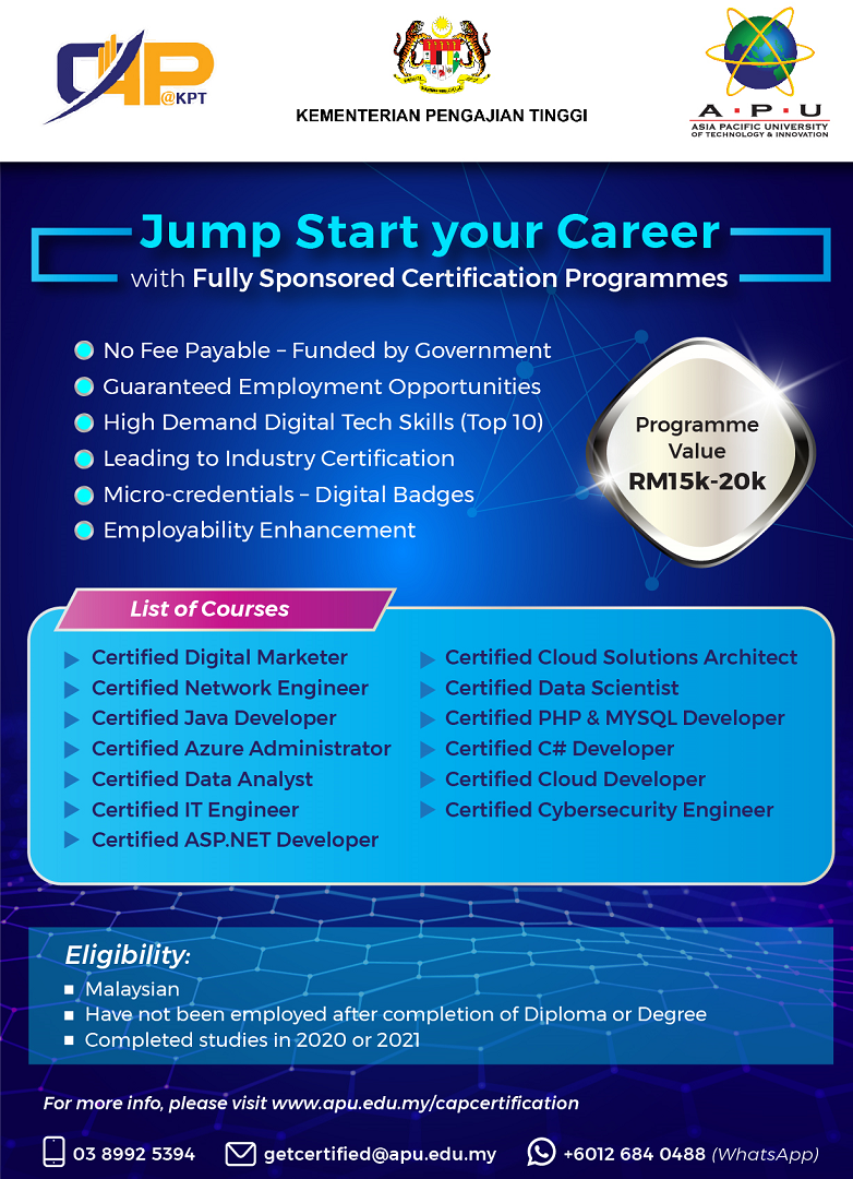 Seats are limited! What are you waiting for? Register now or find out more at https://www.apu.edu.my/capcertification