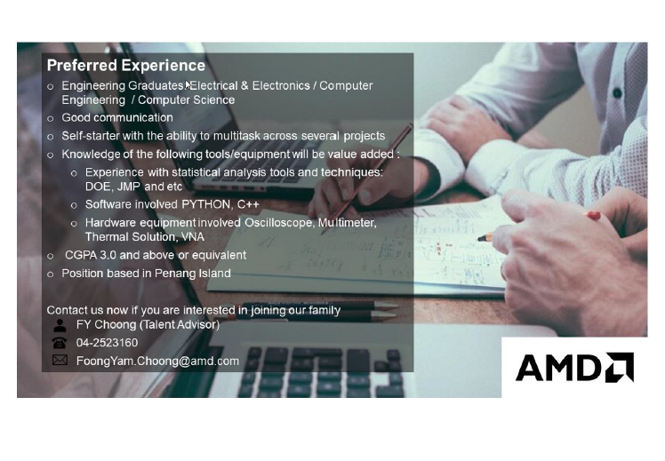 We welcome you to join us at AMD Penang by sending in your resume!