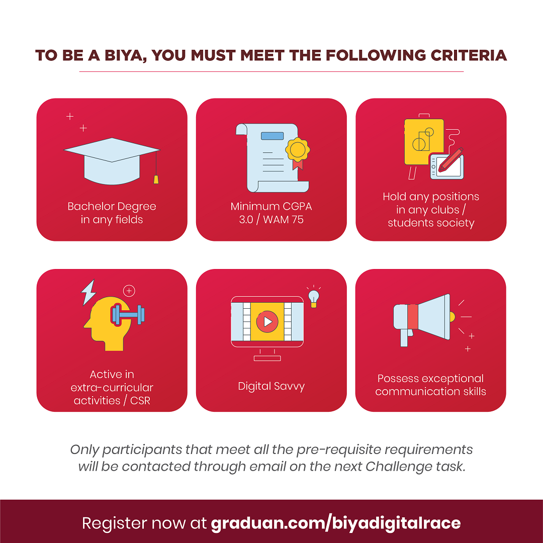 In order to be a Bank Islam Youth Ambassador, you must meet the following criteria! If you checked all of the boxes above then we want you to be part of the BIYA Digital Race today!