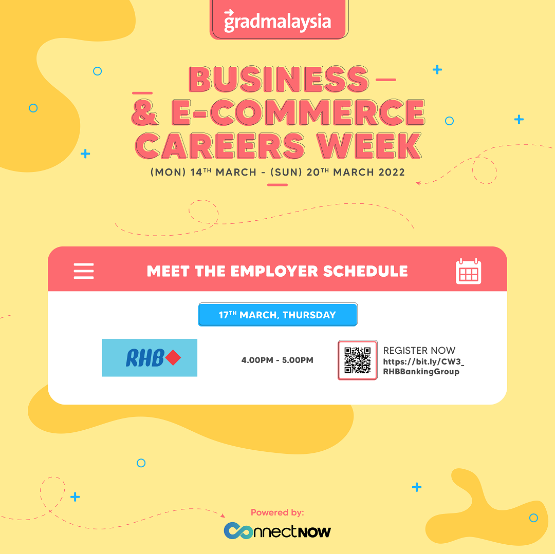 Our gradmalaysia Business & E-Commerce Careers Week is here! From the 14th to the 20th of March, you are invited to join us as esteemed employers and recruiters from reputable companies in Malaysia are sharing useful advice and job opportunities in the finance and insurance fields.