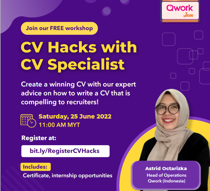 Whether you're a recent graduate or an experienced professional looking to improve your CV, our upcoming "Qwork Jam: CV Hacks with CV Specialist" workshop is for you!