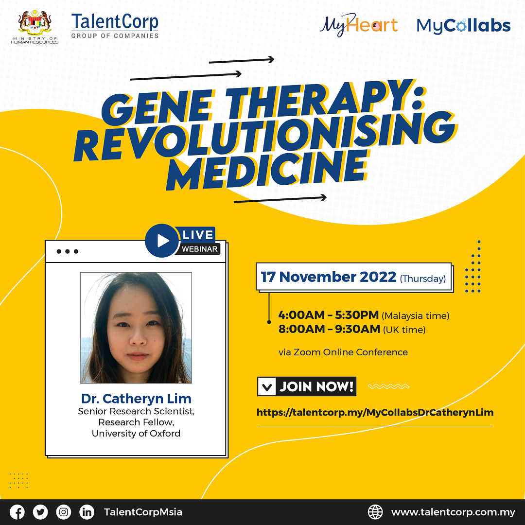 TalentCorp is organising a virtual sharing session for aspiring geneticists and biotechnology researchers with Dr. Catheryn Lim, a Malaysian postdoctoral research scientist at the University of Oxford where she is working towards understanding disease mechanisms and developing genetic treatments for neuromuscular diseases.