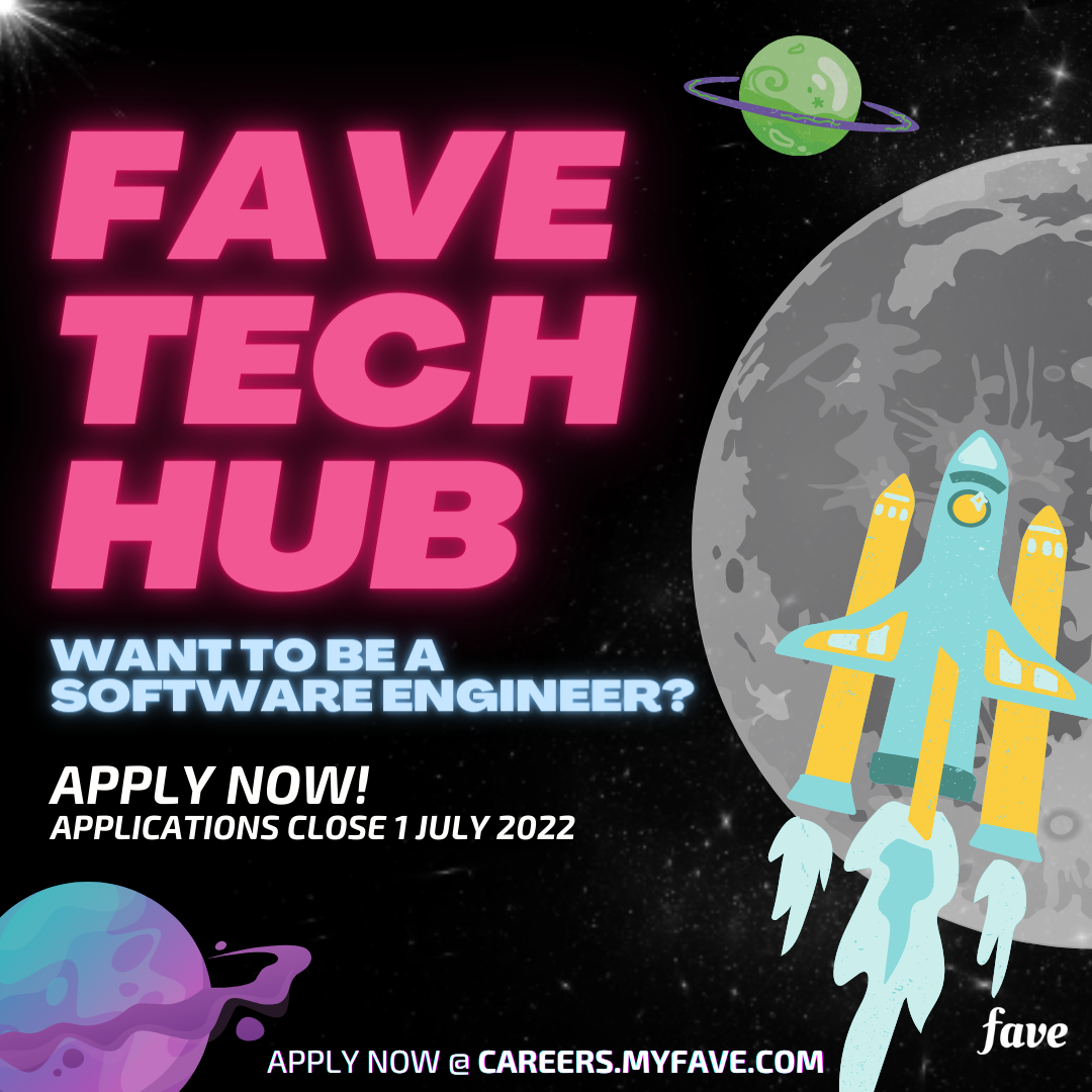 The Fave Tech Hub is a full-time permanent opportunity where fresh graduates and career shifters will first go through a 4-weeks structured programme before becoming a full-fledged Software Engineer at Fave.