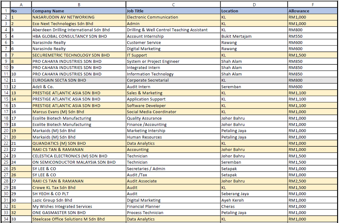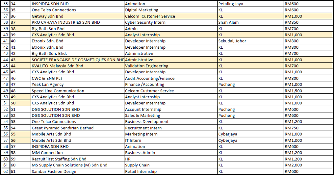 Available internship positions on mynext platform. Applications can be done through at https://talent.mynext.my/