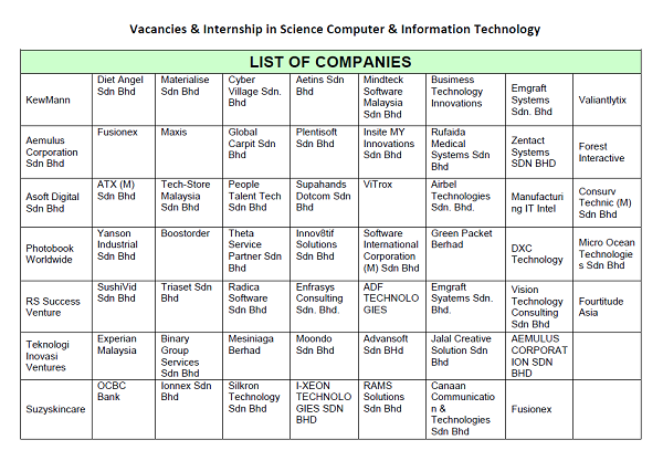 List of Vacancies & Internship in Science Computer & Information Technology from MDEC